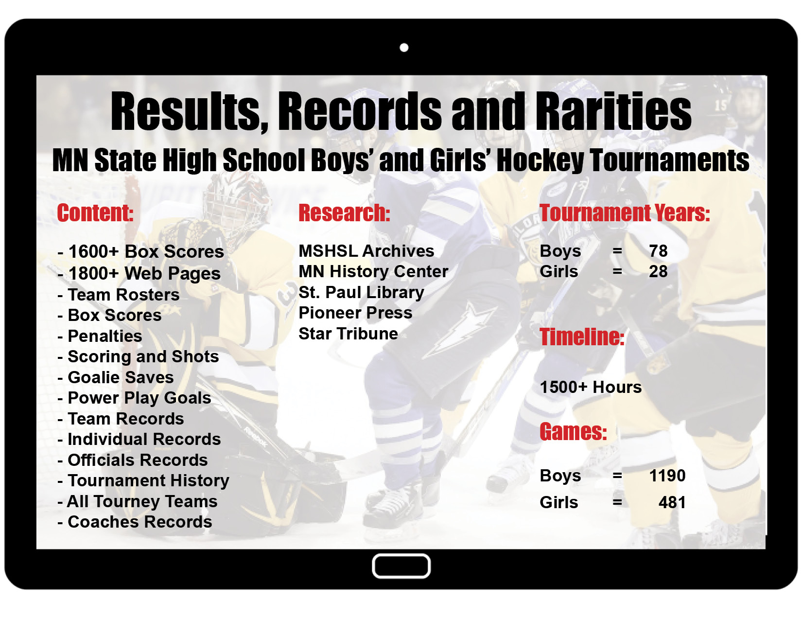 This is the only site that offers COMPLETE box scores for every State Tournament Hockey game ever played!!